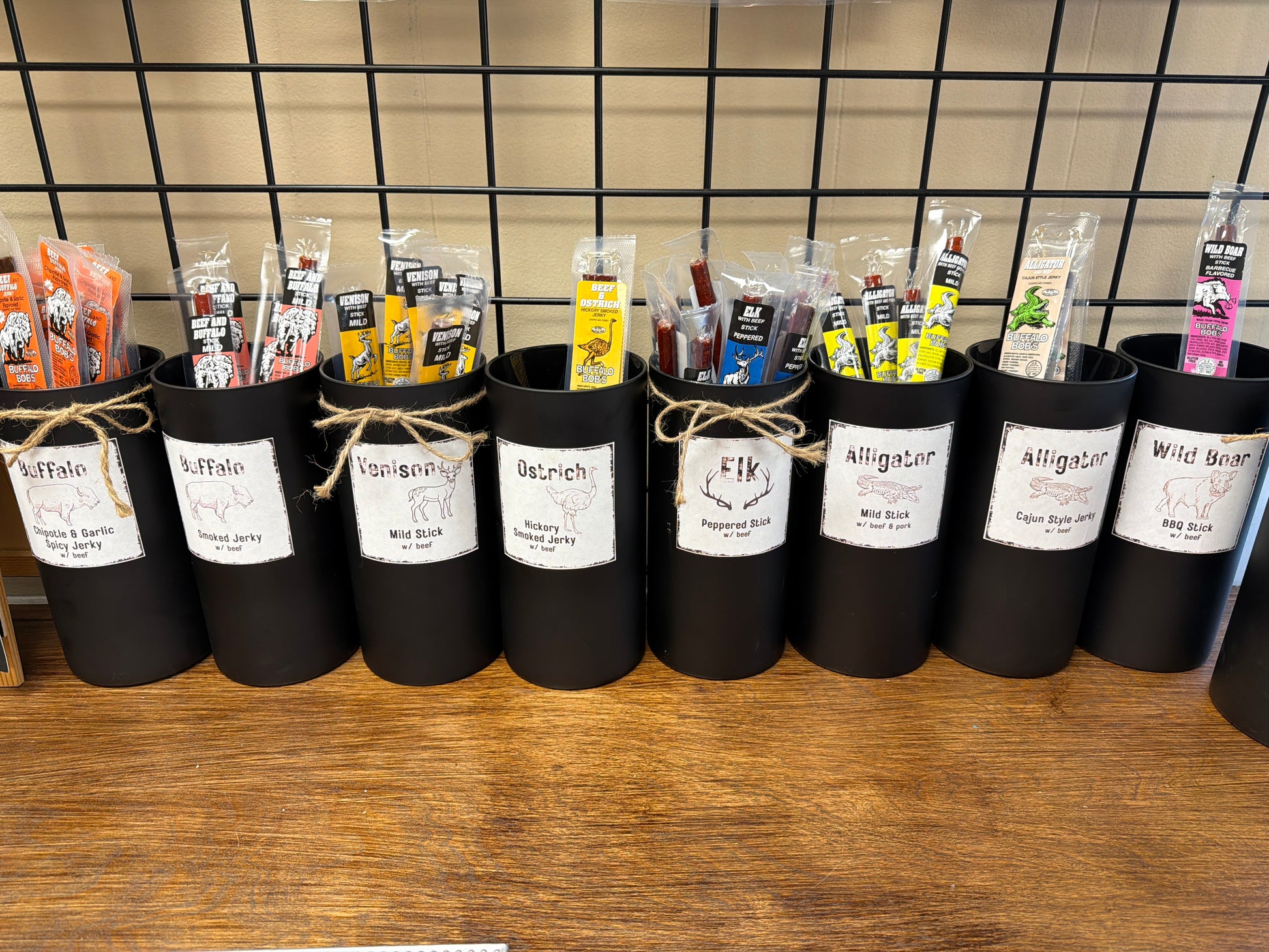 For those who want to try exotics and game but don’t feel adventurous, these meat sticks are mixed with beef, chicken or pork.