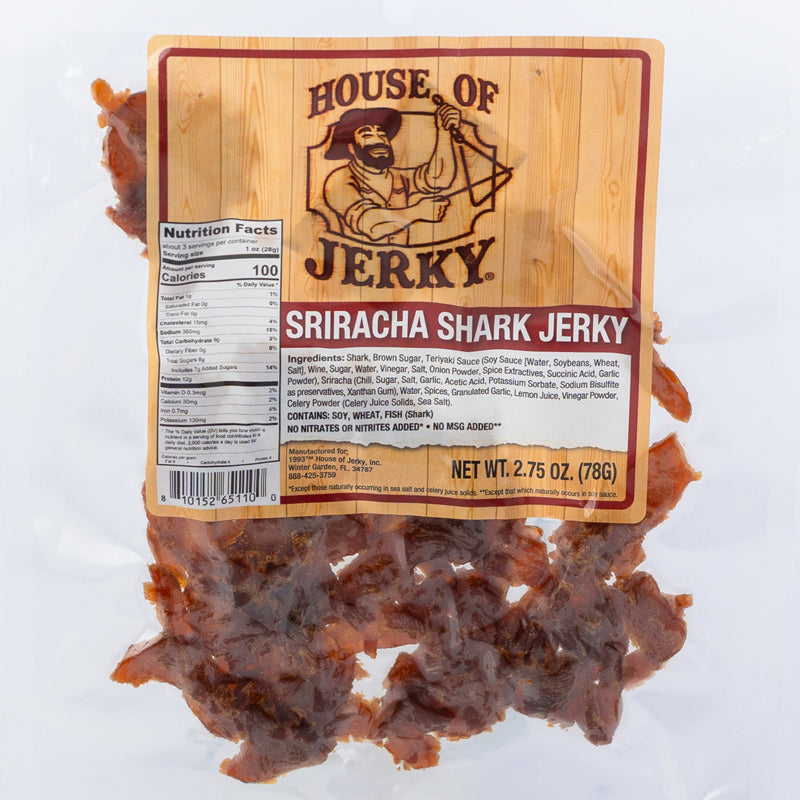 Sriracha Shark: Spicy, savory, and just a little wild – this one bites back (in the best way). We take naturally mild shark meat and turn up the heat with a bold blend of teriyaki, sriracha, brown sugar, garlic, and vinegar for a perfectly balanced burn that lingers just long enough.